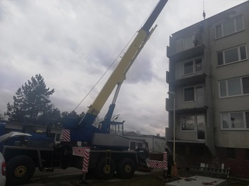 Ivančice, ulice Okružní - výměna starých balkonů za nové lodžie začala. Za pár týdnů bude hotovo a obyvatelé domu si budou moct užívat prostorné lodžie s výhledem do zeleně.
