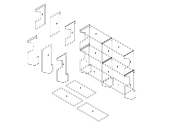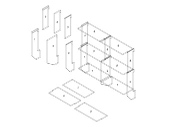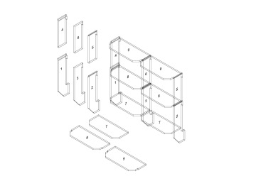 FB 02 - lodžie s obdélníkovou podestou 1 stěna levá kotevní dlouhá 2 stěna pravá kotevní dlouhá 3 stěna vnitřní kotevní dlouhá 4 stěna levá 5 stěna pravá 6 stěna vnitřní 7 deska vkládaná - obdélníková 8 deska běžná 9 deska běžná stříška