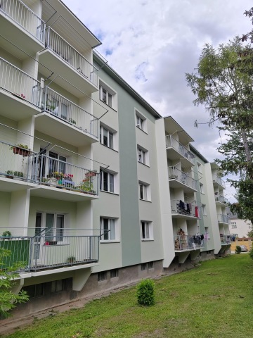 Ve Znojmě je velké sídliště, které se postupně revitalizuje a domy dostávají novou tvář. Na ulice Sokolovská byl vysoký panelový dům v původním stavu a jeho oprava začala na jaře 2019. Dům byl zateplen, střecha byla opravena a místo starých balkonů byly zavěšeny nové balkony. Krásná proměna šedivého káčete v krasavce. Bydlení bude komfortnější a přinese ekonomické úspory.