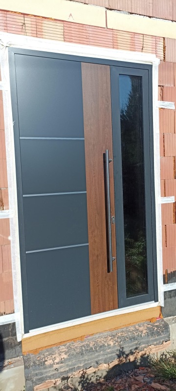 Designové vstupní panelové dveře s bočním světlíkem, otevírání bezkontaktně.