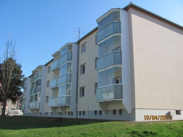 Na ulici Energetiků v Třebíči jsme se podíleli na výměně balkonů za lodžie, přistavěli jsme dva dvojloupce obdélníkových lodžií s mléčným, bezpečnostním sklem. Kopcovitý terén třebíčského sídliště byla velká výzva pro jeřábníky, ale vše se zvládlo a výsledek si můžete prohlédnout na fotografiích.