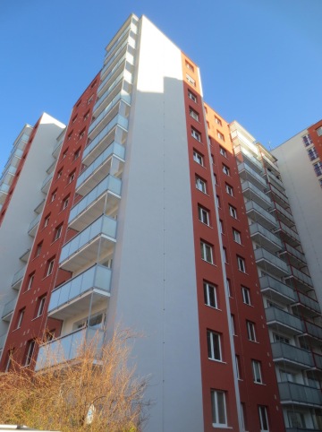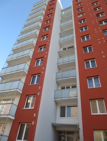 Rozsah díla: nové lodžie 106 ks, hliníkové zábradlí s výplní z bezpečnostního skla, rekonstrukce střechy, zateplení obvodového pláště, částečná výměna oken.