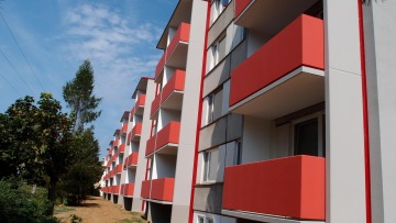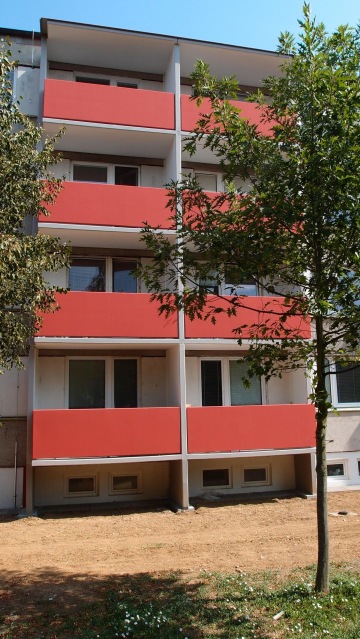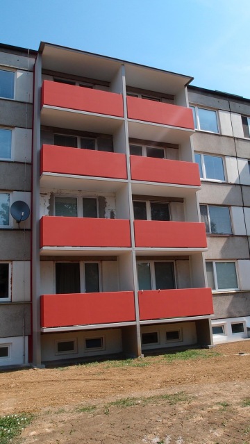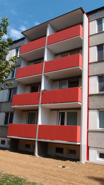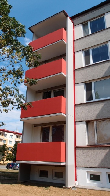 V Uherském Hradišti se na panelovém domě rozhodli začít s rekonstrukcí a první přišly na řadu nové lodžie, které nahradily staré závěsné balkony. Lodžie mají betonové zábradlí a dostaly červený nátěr. Fasáda domu bude řešena následně a jistě barevně dokreslí nové lodžie.