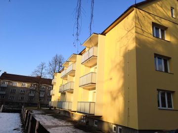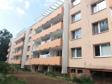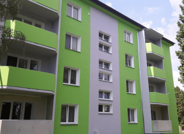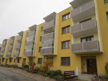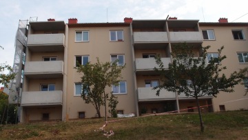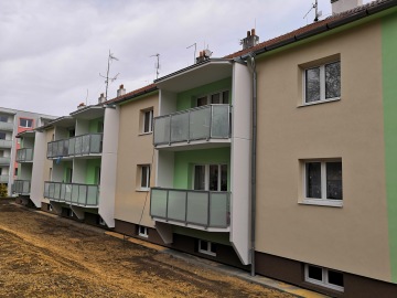 Menší bytový dům získal nové betonové lodžie výměnou za stávající balkony. Nově byly namontovány 4 lodžie v přízemí, kde předtím žádné nebyly.