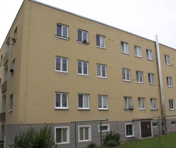 Vysoký panelový dům v Novém Městě na Moravě se celkovou rekonstrukcí proměnil v krásnou budovu v příjemném prostředí zeleného sídliště. Nevyhovující a nevzhledné modré balkony byly vyměněny za lodžie a většina nájemníků si je nechala zasklít.
