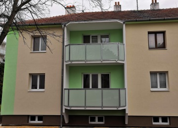 Menší bytový dům na okraji Náměšti nad Oslavou stojí opravdu v blízkosti přírody a ulice Lesní je naprosto výstižná svému prostředí. Dům prošel citlivou revitalizací a získal nové lodžie o šířce 4,2 m, což nabízí opravdu velký užitný prostor navíc. Výplň zábradlí tvoři tzv. tahokov, který je ekonomicky výhodnou variantou a v případě, že je soukromí na lodžii zajištěno bujnou zelení, je to i velmi pěkná volba. Lodžií jsme namontovali pouze 6 ks, ale efekt pro celý dům je opravdu velký.
