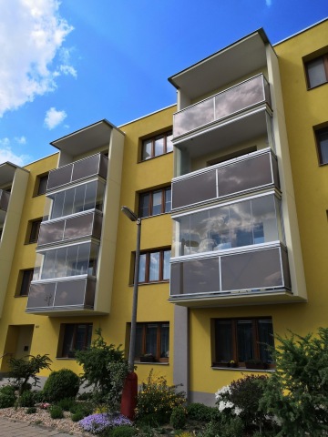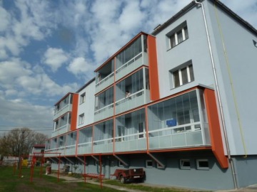 V Náměšti nad Oslavou jsme realizovali přístavbu lodžií na mnoha domech, bytový dům na ulici Nad Příhořím je další úspěšnou zakázkou, kde jsme vyměnily staré a nevyhovující balkony za nové lodžie, které si většina obyvatel nechala zasklít. Výplň zábradlí je z matného bezpečnostního skla, které dává domu zajímavý vzhled a poskytuje dostatek soukromí na lodžii.