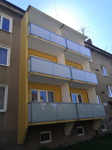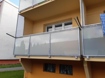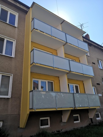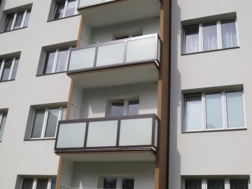 Rozsah prací: nové lodžie - 27 ks s žárově zinkovaným zábradlím s výplní z bezpečnostního skla.