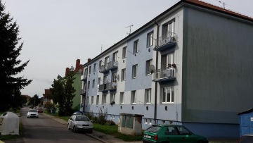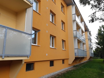 Menší bytový dům v moravském městě Veselí nad Moravou a výměna zastaralých balkonů za nové lodžie. Obyvatelům bytu se výměnou naskytl příjemný venkovní prostor, svislé paravany mezi lodžiemi zajistí soukromí a přitom nezabrání světlu - stejně tak výplň zábradlí z mléčného bezpečnostního skla. Dům byl kompletně zateplen, zdařilá revitalizace!