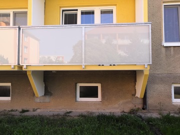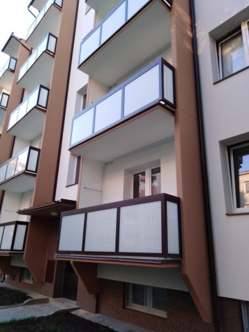Rozsah prací: nové lodžie 18 ks se zábradlím z bezpečnostního skla.