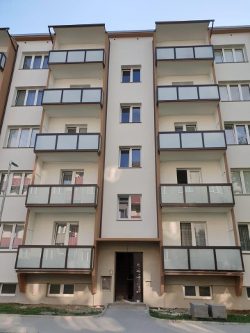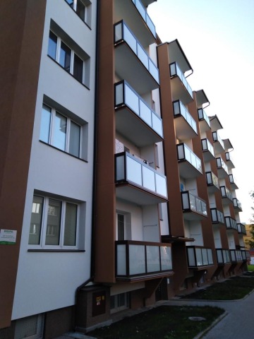 Revitalizace bytového domu v Třinci, na ulici Dukelská. Podíleli jsme se výměnou starých balkonů za nové lodžie, celkem jsme namontovali 40 lodžií, z toho 30 ks v šířce 3,6 m a 10 ks v šířce 2,4 m. Zábradlí lodžií je hliníkové, s povrchovou úpravou Komaxit a s výplní z bezpečnostního skla.