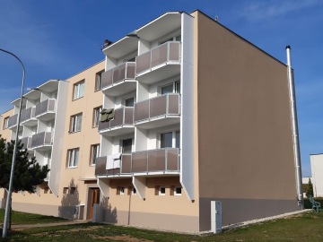 Menší cihlový bytový dům v Břeclavi má nové lodžie s obdélníkovým tvarem a zábradlím z bezpečnostního skla s mléčnou výplní. Přístavbou lodžií získali vlastní venkovní prostor i byty v přízemí, které doposud neměly ani balkon. Dům se časem určitě dočká i zateplení a nové fasády, zatím si obyvatelé mohou užívat lodžiovou pohodu.