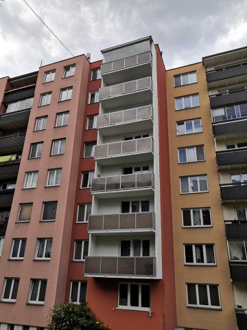 Rozsah díla: 36 ks lodžií FB01, žárově zinkované zábradlí s výplní z bezpečnostního skla, zateplení obvodové zdi domu.