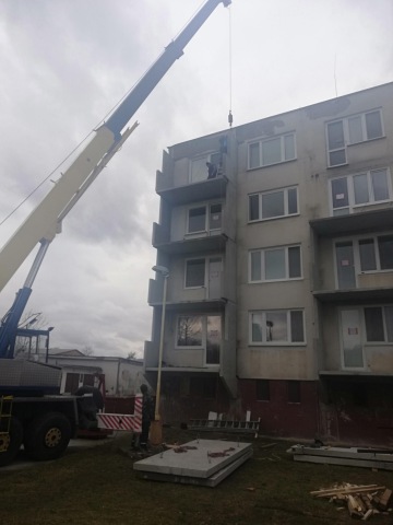 Pro velký bytový dům v Trenčianských Teplicích jsme provedli výměnu starých balkonů za nové lodžie obdélníkového tvaru.