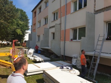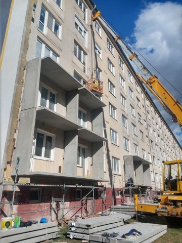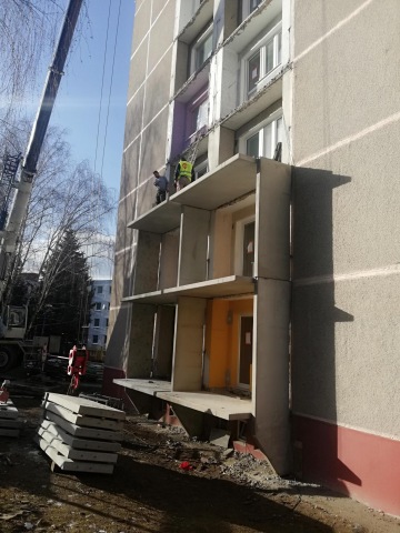 Pro velký bytový dům v Trenčianských Teplicích jsme provedli výměnu starých balkonů za nové lodžie obdélníkového tvaru.