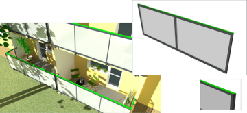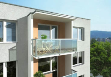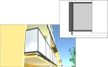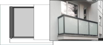 Zábradlí zarovnané s podestou – čelní hrana zábradlí je zarovnaná s čelní hranou podesty. U této varianty není nutné při případném zasklení celé lodžie použití vynášecích profilů.
