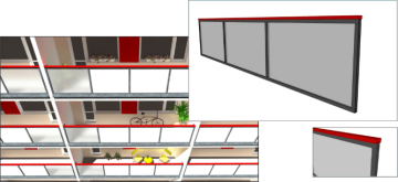 Zábradlí s horním madlem - ve formě hliníkového profilu o rozměru 80 x 40 x 3 mm. Madlo je povinnou součástí zábradlí při šířce nad 3,6 m.